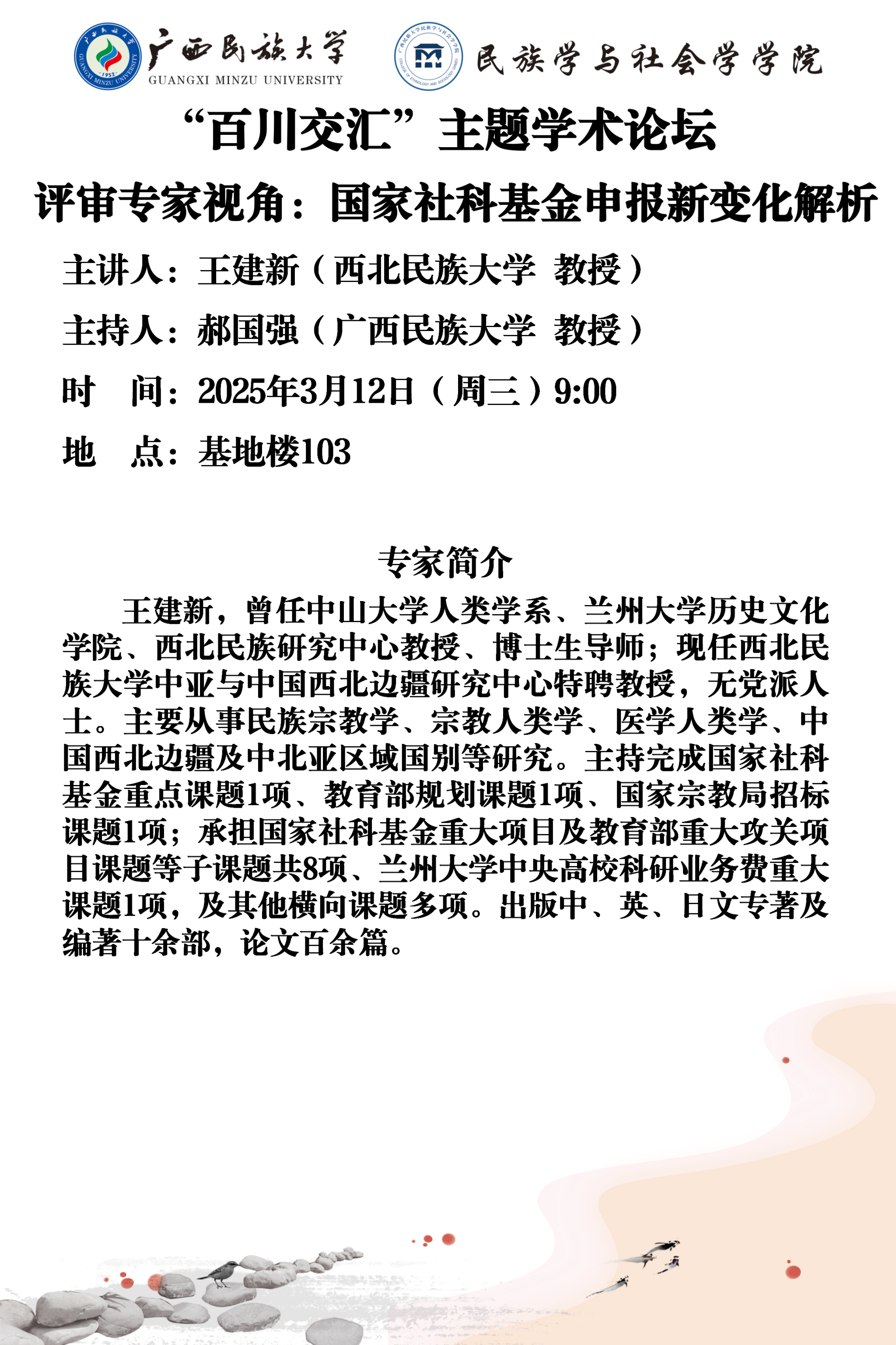 民族学与社会学学院“百川交汇”主题学术论坛第十七期之三:评审专家视角:国家社科基金项目申报新变化解析