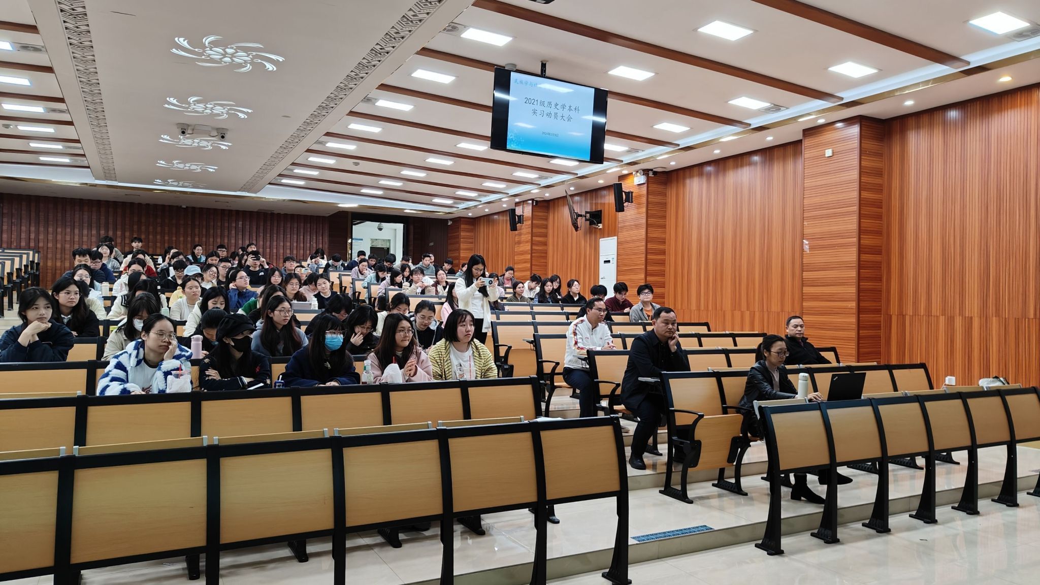 为确保教育实习工作有序开展并取得实效,2024年3月8日下午,我院在学友楼105室召开了2021级历史学本科教育实习动员大会。学院副院长滕兰花,历史系教师富霞,带队教师胡小安、朱华进、龙小峰、梁善明、李方恩、邓平以及2021级历史学专业全体本科生参加。会议由系主任朱华进主持。