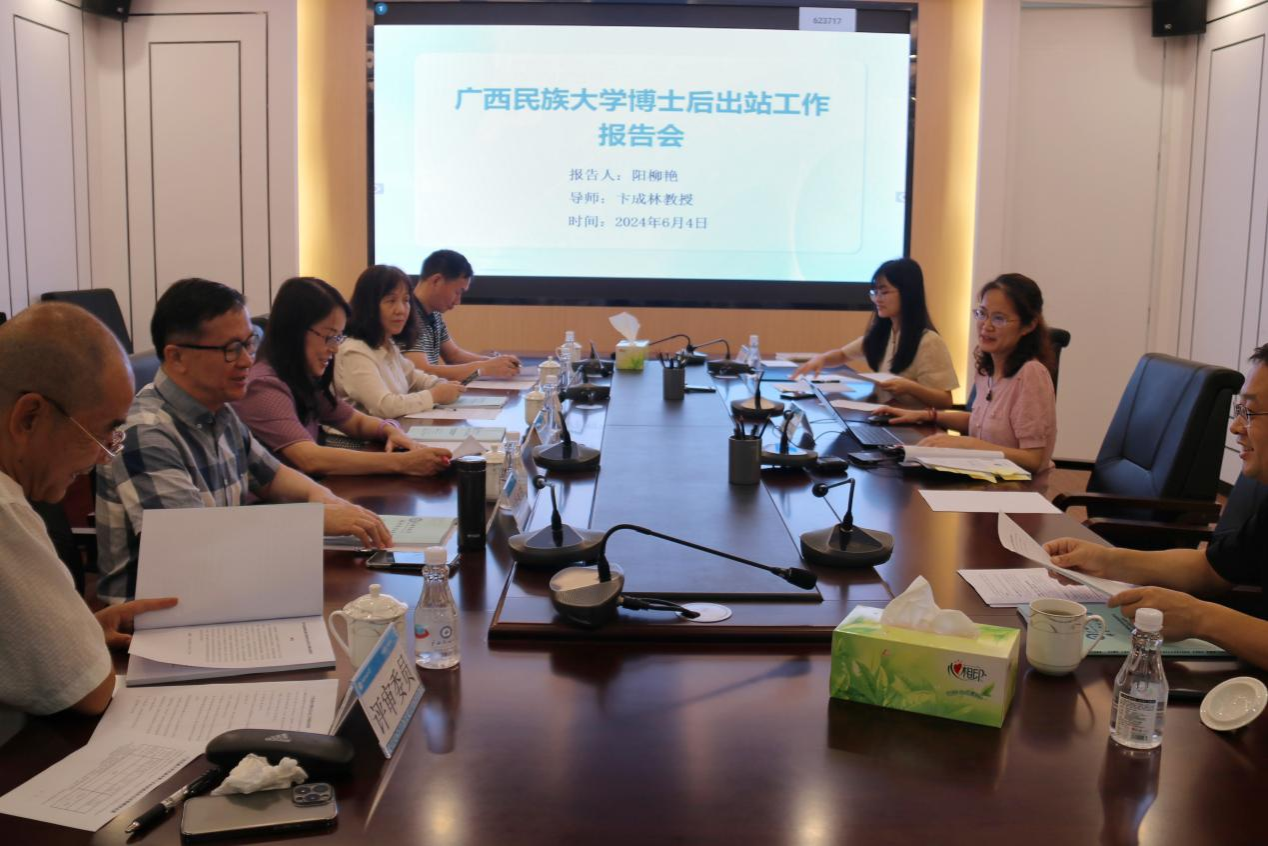 阳柳艳博士后向评审专家们介绍了其进站以来的研究工作及科研成果情况,并围绕其出站报告《广西中越边境地区居民语言使用与经济社会发展关系研究》进行了详细报告。该报告阐述了选题背景、研究意义、项目创新点以及研究方法等多个方面,对广西中越边境地区居民的语言使用情况与经济社会发展的关系进行了深入分析,详细论述了广西中越边境地区语言能力助力经济社会发展的内在机理和现实效应。