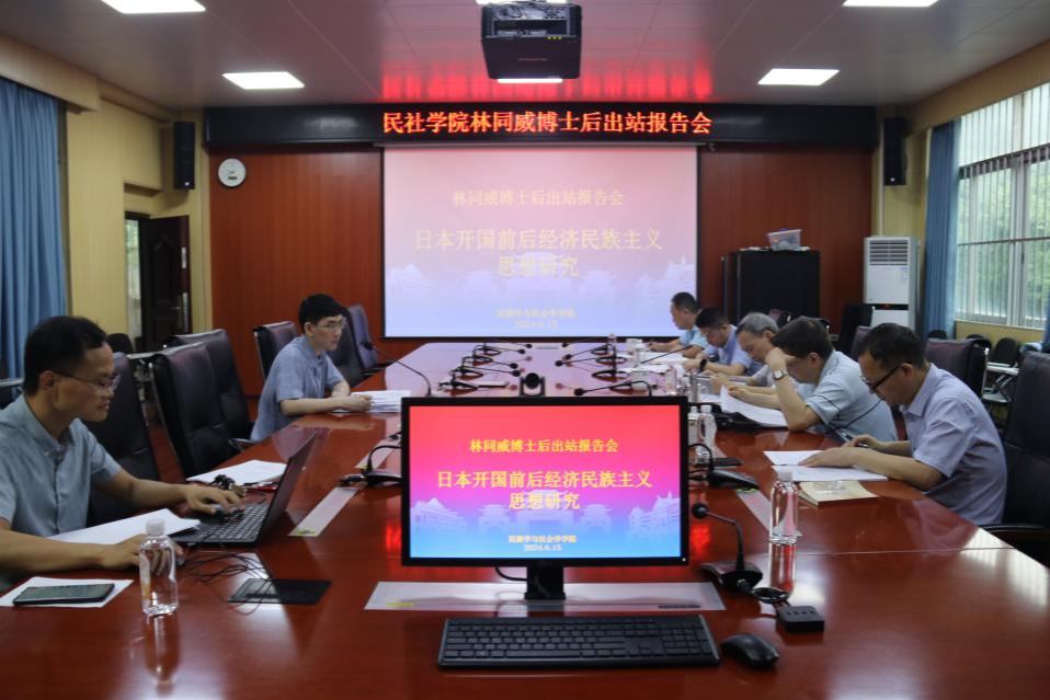 林同威博士的出站报告主题为《日本开国前后经济民族主义思想研究》。在报告会上,林同威博士分别从选题意义、国内外研究现状、研究思路框架和方法、研究创新点、相关概念界定、具体内容等方面进行了陈述。