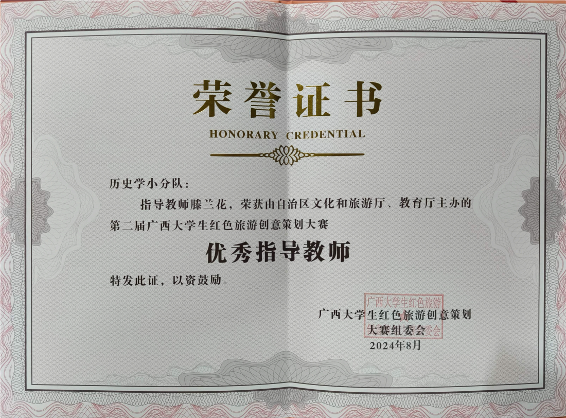 我院学生荣获“第二届广西大学生红色旅游创意策划大赛”优秀奖