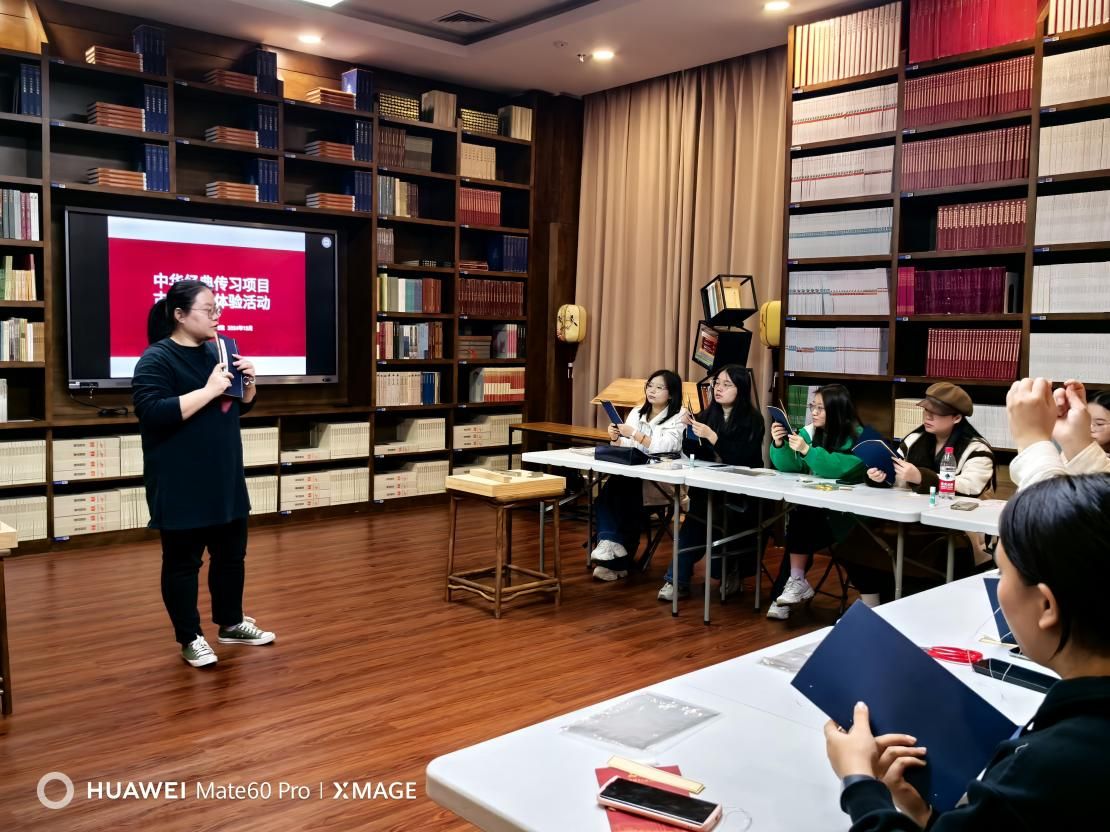 活动伊始,广西博物馆“中华经典传习所”的古籍保护工作人员张驰老师向同学们介绍了中华传统典籍装帧的演变历史及相关保护知识。随后,在古籍修复专家杜宇、杨洪飞老师的指导下,同学们亲手体验了古籍线装装订的过程,深刻体会到了古籍装帧工艺的复杂与精妙。