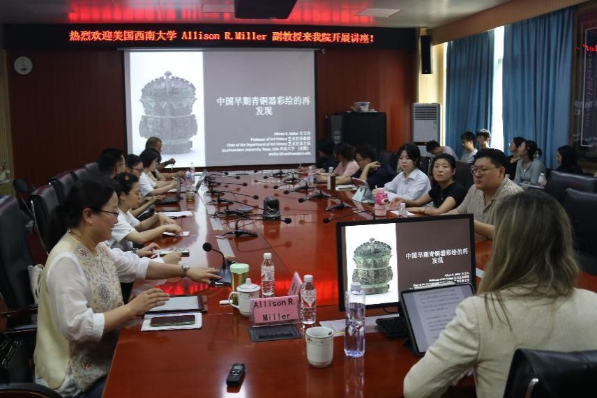 2025年4月28日下午,betway必威西汉姆联官网民族学与社会学学院“百川交汇”主题学术论坛邀请美国西南大学(Southwestern University)艺术史副教授兼系主任Allison R.Miller在基地楼103会议室做题为“中国早期青铜器彩绘再发现”的专题讲座。此次讲座由我校副研究馆员富霞老师主持,我院部分师生到场聆听。