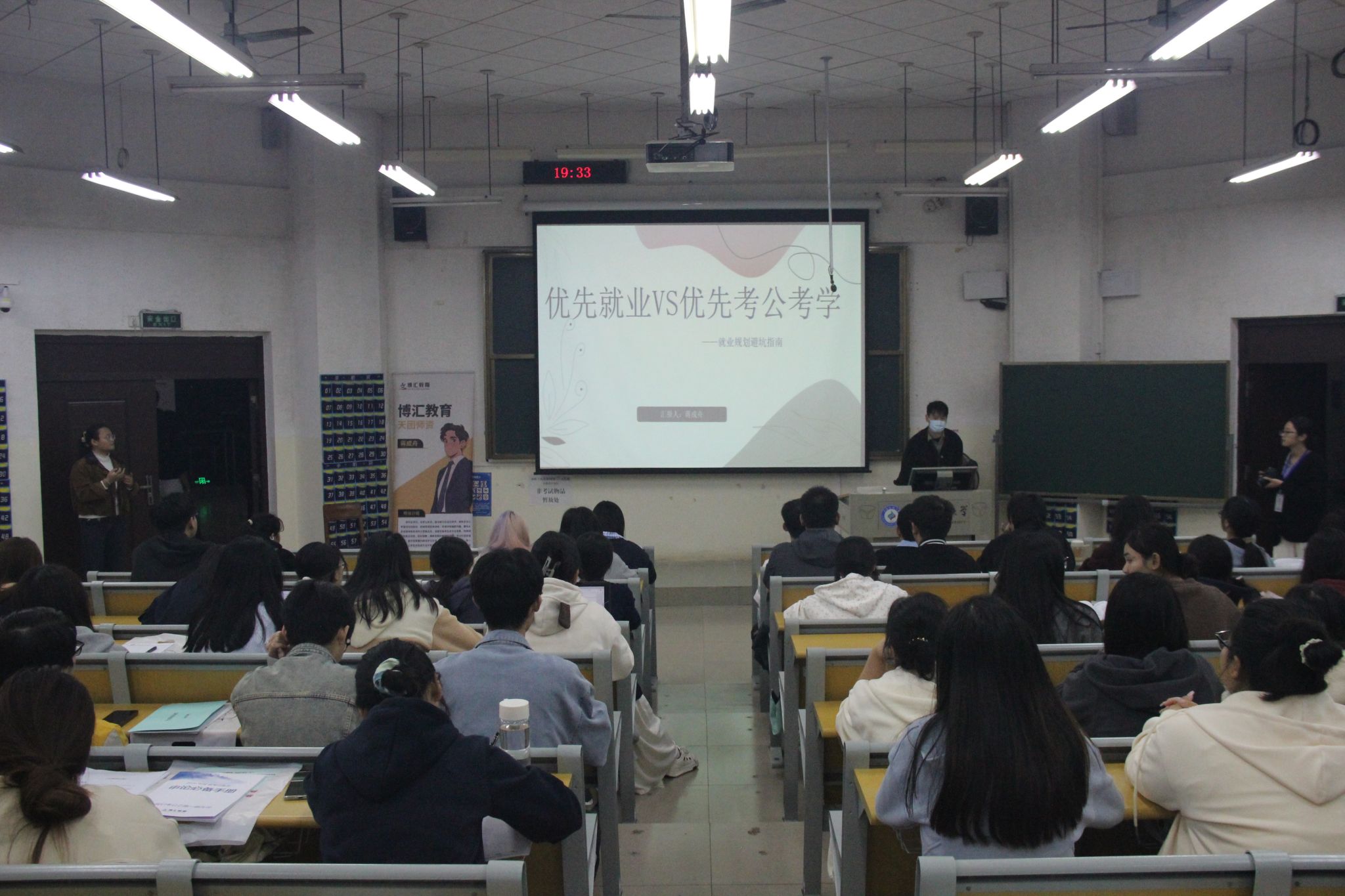 为帮助学生明确职业方向、科学规划未来发展,11月4日晚,民族学与社会学学院在学友楼402室举办就业规划选择指南专场讲座。活动特邀博汇教育讲师蒋成舟担任主讲,围绕“优先就业VS优先考公考学”主题展开分享。讲座由学院辅导员王颖超主持。