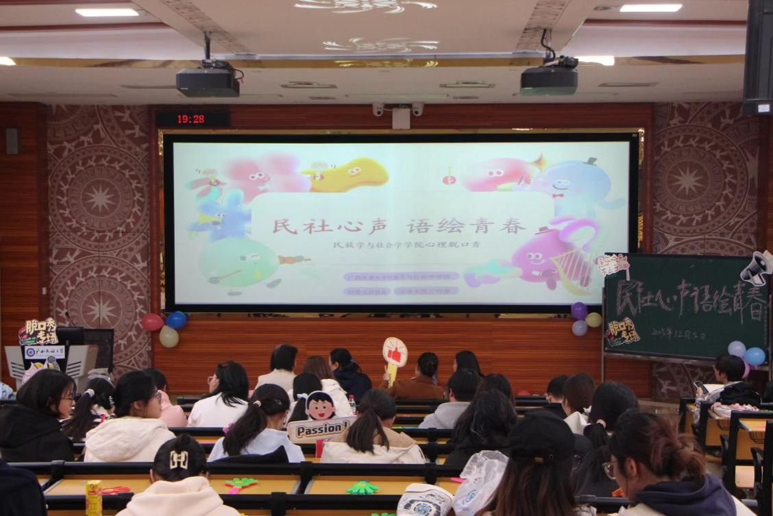 为疏解学生学业压力,营造健康向上的校园文化氛围,2025年12月5日晚,民族学与社会学学院在学友楼105室举办“民社心声 语绘青春”心理脱口秀比赛。学院党委副书记陆惠君,王玗、艾晶、明陈颖、曹晗受邀担任评委,比赛由罗金森同学主持。