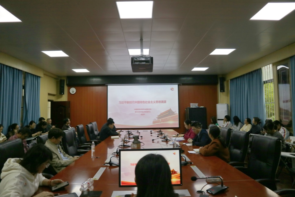培训会上,全体教职工共同学习了视频课程《习近平新时代中国特色社会主义思想溯源》第一集的内容。视频主讲人程冠军从中国共产党第十八次全国代表大会开始回溯习近平重要思想,详细梳理了习近平总书记的思想发展历程和理论体系。